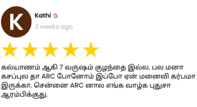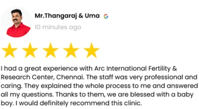 VerifiedWe felt lost and helpless, but our last chance came in the form of ARC Fertility hospital in chennai. Their support and treatment guidance took us through those difficult days and now our baby child’s smile is the beautiful reminder of our hope and prayers.