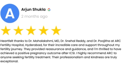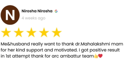 VerifiedFinally, through five long years and two unsuccessful attempts, ARC transformed our greatest pain into our greatest joy. ARC is the best fertility hospital in chennai because pregnancy was a dream come true moment for us earlier but now its a reality.